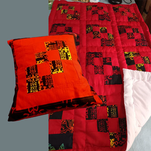 Dibuat menggunakan teknik Patchwork & Quilting,