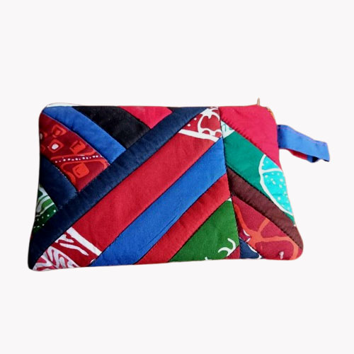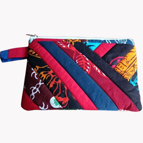 pouch ini dibuat dari kain perca menggunakan teknik patchwork